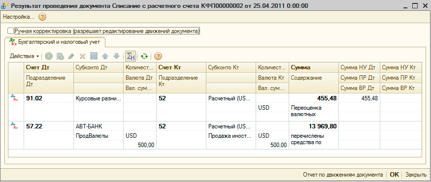 Документ формирует проводки по бухгалтерскому и налоговому учету: